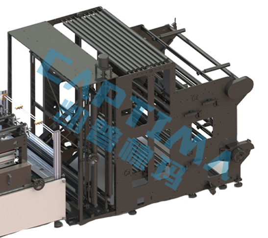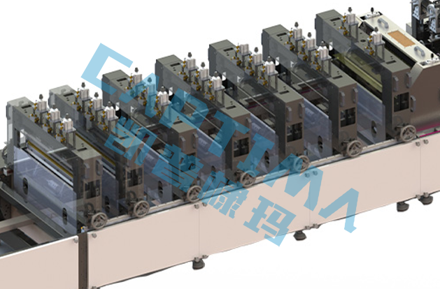 横封烫压机身是一体结构,上、下运动式结构,单组配套单独伺服电机并通过伺服电机来控制烫压的压力,烫压时间及烫压节拍,采用多组低温的烫压模式并由系统进行匹配,确保可回收新材料或单一材质能在最完美的状态下热封,不破坏表面及控制牵引力,避免超成材料的拉伸以及最终成品的质量,并提升机速度至300刀每分钟,实现600袋每分钟的产能。
