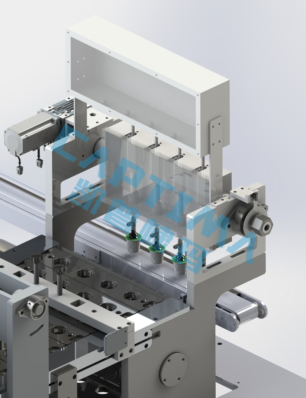 通过伺服电机连接机械结构,上、下运转式称重模式,称重精度:0.002g,速度匹配罐装线体。